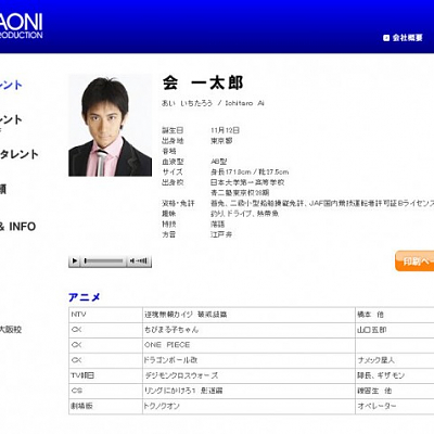 아이 이치타로 (AI ICHITAROU)|会一太郎 생년월일 1987.11.12 신장 172cm 혈액형 AB 소속사 아오니 프로덕션 트위터 https://x.com/aiichitaro 홈페이지 https://www.instagram.com/ins_taro/ 프로필 [로그] [정보수정] [신규등록] 성우정보 1-http://anidb.net/perl-bin/animedb.pl?show=creator&creatorid=20331 성우정보 2-https://ja.wikipedia.org/wiki/%E4%BC%9A%E4%B8%80%E5%A4%AA%E9%83%8E 새 소식 성우 아이 이치타로, 같은 사무소 소속의 성우 사사키 아이와 결혼 발표[1]2016-08-21 판타지 스타 온라인 2: 에피소드 오라클|2019.10.07 타쿠라 (TAKURA)|タクラ 판타지 스타 온라인 2 애니메이션|2016.01.08 오카 캣츠(리얼) (OGA CATS)|オーガキャッツ(リアル)