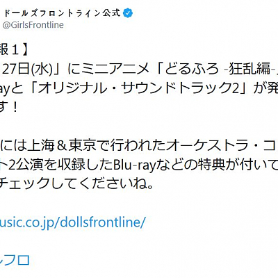 게임 '소녀전선'의 미니 애니메이션 '광란편'의 블루레이가 2020년 5월 27일 발매 예정[1]2020-03-15